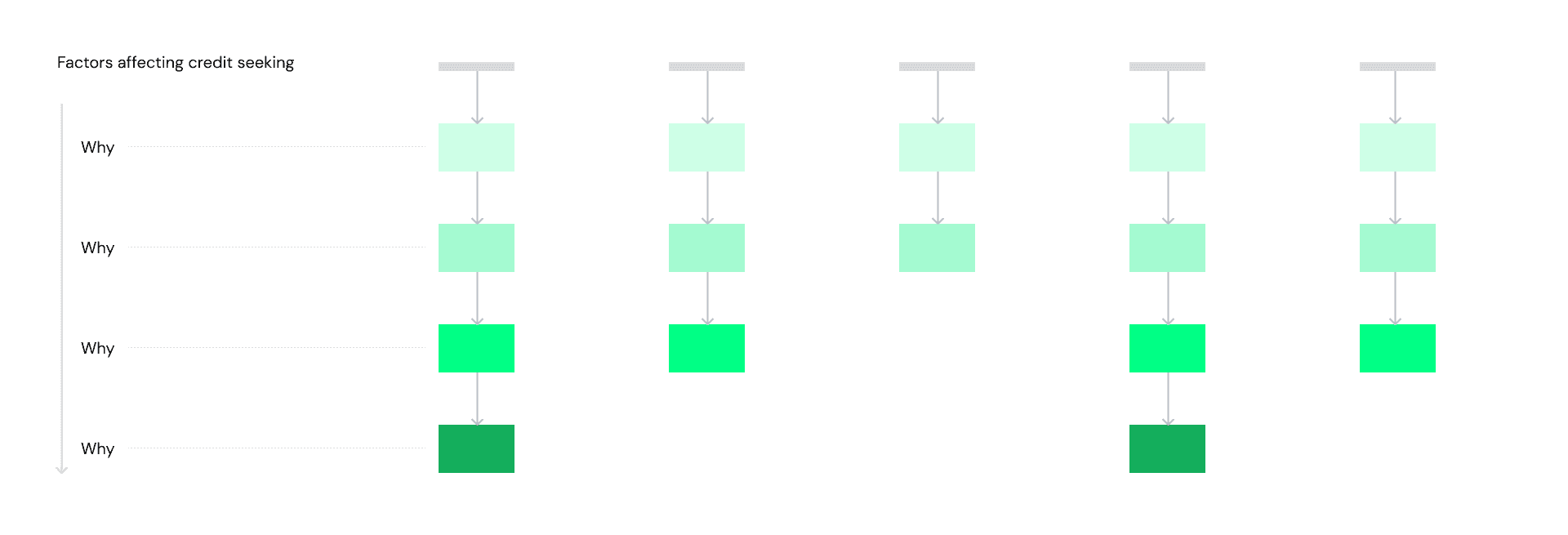 Once the context of your interest is set, the strength of design research lies in the ways of getting to know the users. In the case of this study, once we have determined the factors that affect their credit-seeking behavior, we dig deeper into the cause of the factor as to why is this happening. Uncovering the social, cultural, and primal drives that are driving some of their behaviors.