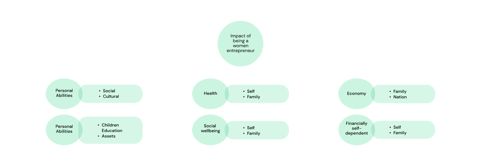 The below chart showcases the impact of women venturing into entrepreneurship in various aspects: